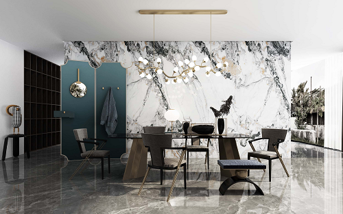 巖板由于其性質(zhì)穩(wěn)定、不易變形、防水防潮等特點(diǎn),常用于廚房臺面、浴室墻面、地面等場所。而大理石則常用于豪華裝修、地面雕刻等場所。